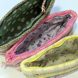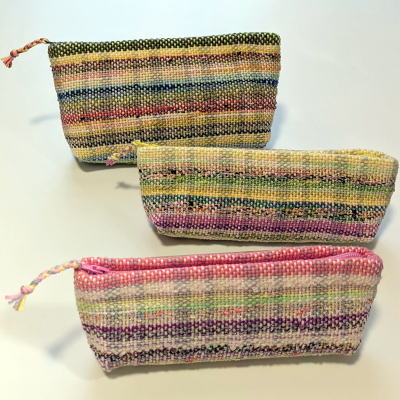 たくさんの糸を自由に織り入れた生地で、ペンケースを作りました。