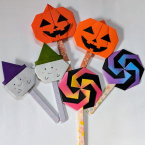 nstagram、YouTubeであれこれ教えてもらって、ハロウィンっぽい折り紙、やってみました。