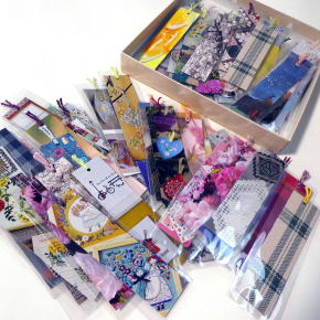 今、木曜日3時間だけ営業していますが、ぽろぽろとお客様が立ち寄って下さり、栞を、気前よく何枚でもと差し上げて、まだたくさんあると思ってしまってある箱を見たら、少ししかなくなっていました(^^;